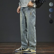 wassup남성 청바지 와이드 스트레이트진프리미엄 워싱 스판 빅 사이즈 팬츠