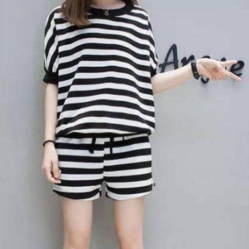 [에이치플러스몰]스트라이프 반팔 상하세트 데일리 여름 트레이닝복