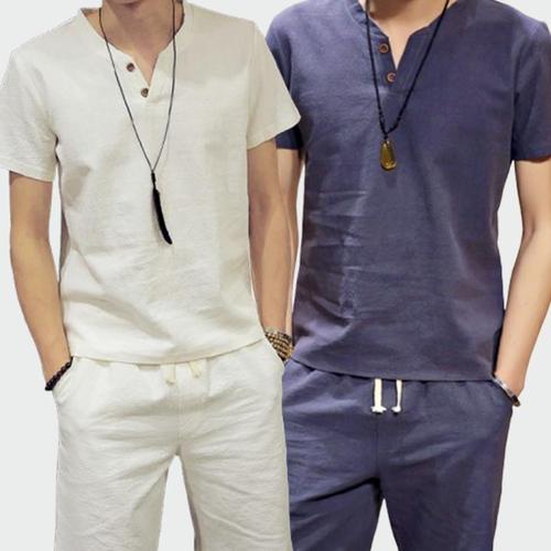 [셀러허브_여성트랜드패션]린넨 HL] 반바지 상하세트 반팔 여름 바캉스룩 남성