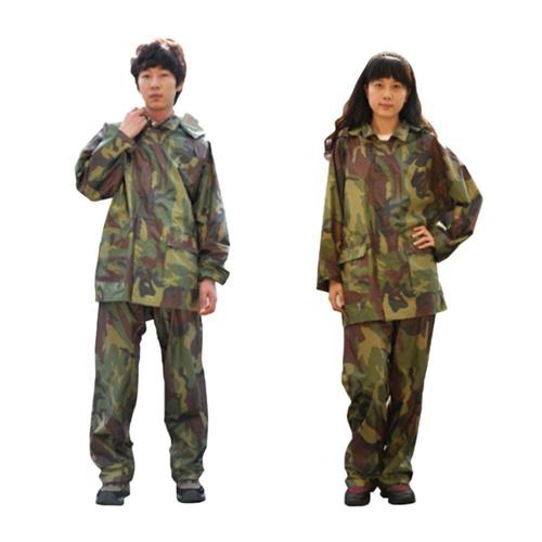 [옷자락]남성 산행용 등산우의 롱슬리브 긴바지 카모플라쥬 세트