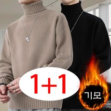 1+1 남성용 폴라 니트 스웨터 가을 겨울 심플 데일리 도톰 보온 상의 슬림핏 솔리드 기모 이너 니트 LJX