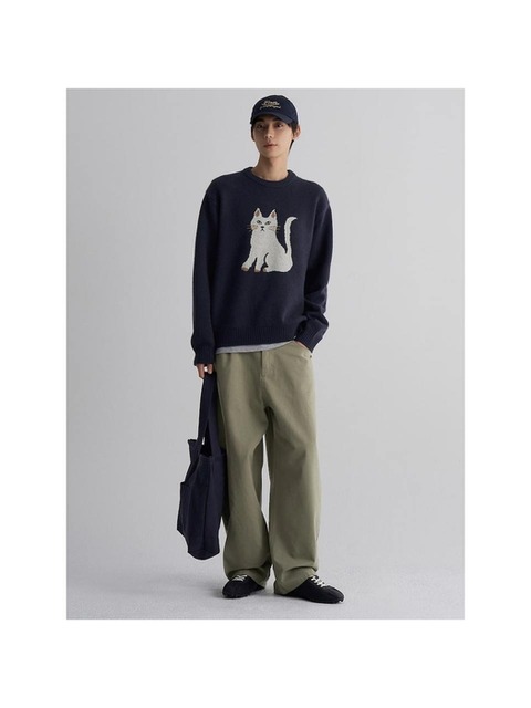 [에잇세컨즈] 애니멀 그래픽 라운드 니트네이비 (425X51LY4R)