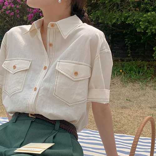 슈팅스타 / 베이직아이템 포켓 라인 포인트 린넨 반소매 셔츠