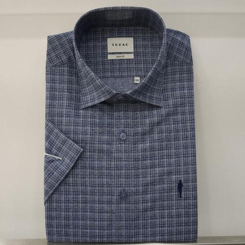 [예작]예작 22S/S 네이비 카치온 체크프린트 슬림핏 반팔셔츠 YJ2MBS263_SC