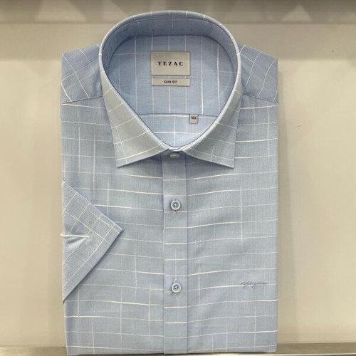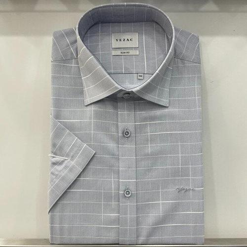 [예작]예작 22S/S 블루 윈도우 체크 슬림핏 반팔셔츠 YJ2MBS262_SC