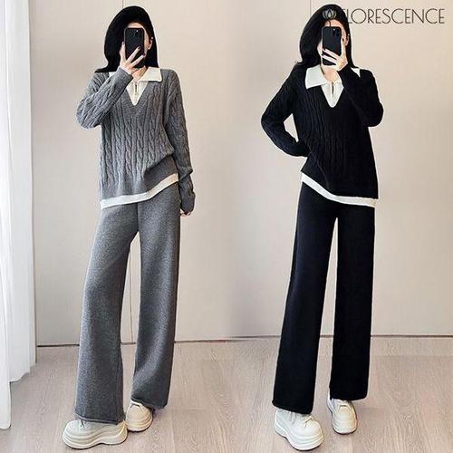 [헬리꽁땡](55~88)케이블니트 바지상하세트 봄니트 간절기니트 니트티 브이넥 카라넥 봄조끼
