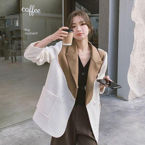 [무드수]하이앤드 배색 엠보 봄 자켓 브라운
