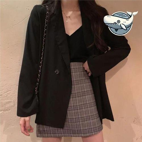 [에이치플러스몰]모던 스타일 블랙 오버핏 자켓 가벼운 봄가을