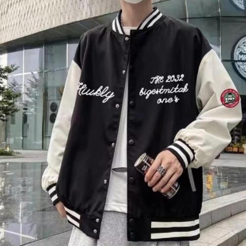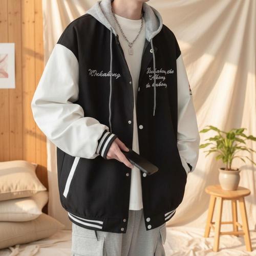 야구 자켓 재킷 점퍼 베이스볼 바시티 스타디움 캐주얼 남자 남성 컬러 블로킹 저지 패션 트렌드 블랙 화이