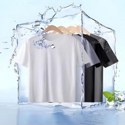 남성용 반팔 여름 순색 신축성 있는 캐주얼 얇은 아이스 실크 티셔츠