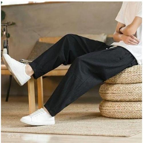 남자 캐주얼 면바지 와이드 배기 린넨팬츠 사계절용 루즈핏 무지 스트링 순색 9부바지