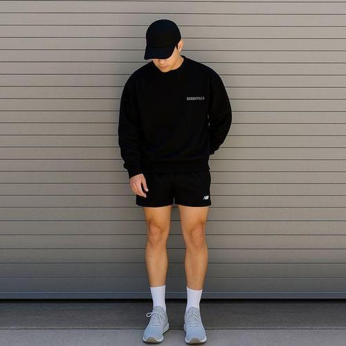 [뉴발란스]NB 에센셜 스택드로고 프렌치테리 남성 트레이닝 반바지 팬츠 블랙 MS31540-BK