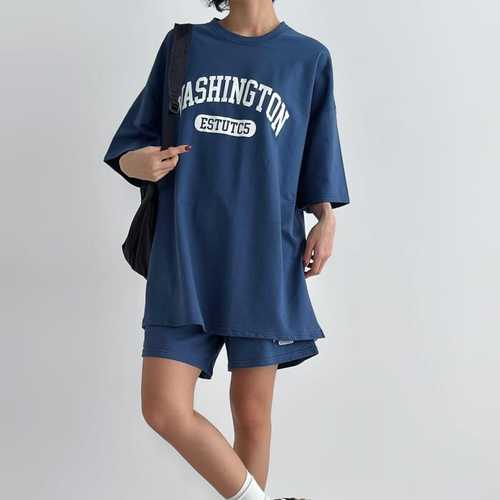옷자락 / 여자 남자 오버핏 나염 반팔티 밴딩 4부 반바지 세트