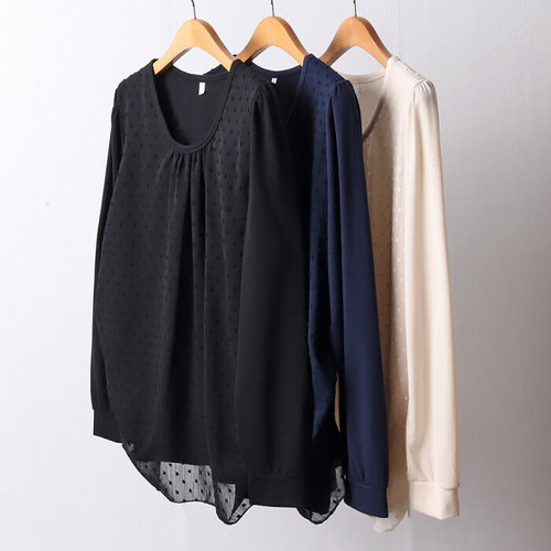 나야홍 / 빅사이즈티 F386L510 라운드눈꽃도트티셔츠 MN