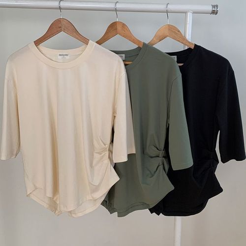 나야홍 / 빅사이즈티 V204L509 핀턱주름포인트티셔츠 MO