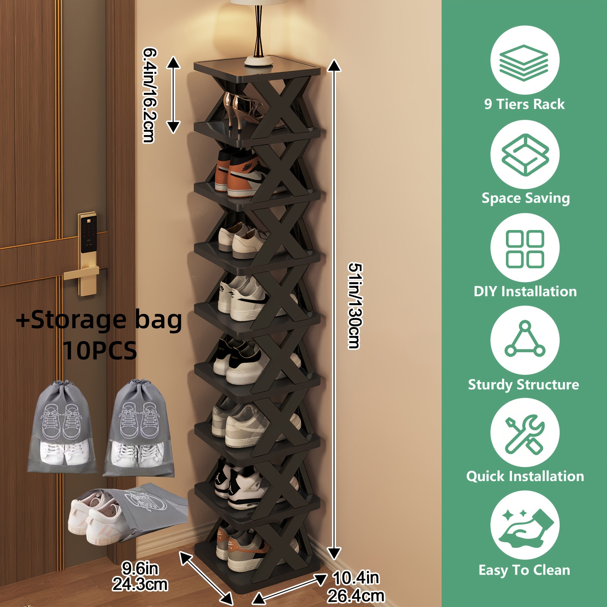 TEMU 9/6+10개 세로 접이식 신발 정리대 | 공간 절약형 코너 수납 정리함 (9-10켤레 신발 및 부츠용), 현관, 옷장, 차고 및 거실용 다기능 캐비닛|거실장