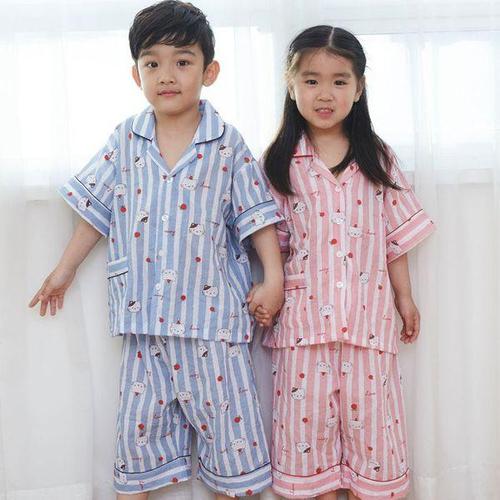 [알콩단잠]키즈상하복 고양이 스트라이프 어린이잠옷 면혼방 파자마 유아 남아실내복