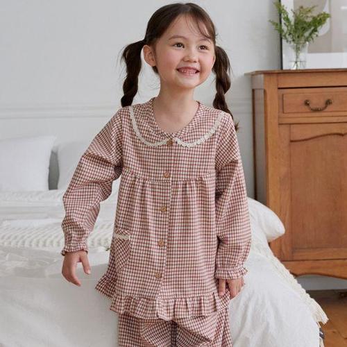 [알콩단잠]국내생산 유아동 남아 여아 파자마 체크 파자마 잠옷 선염기모 실내복
