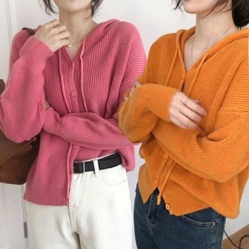 [하젤]써니힐 꽈배기 후드 골지 니트 가디건_W4320