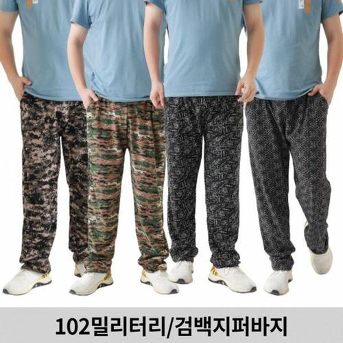 [에이치플러스몰]봄 가을 간절기 남자바지 검백패턴 밀리터리 작업복 편한바지 긴바지 일복 몸빼 고무밴..