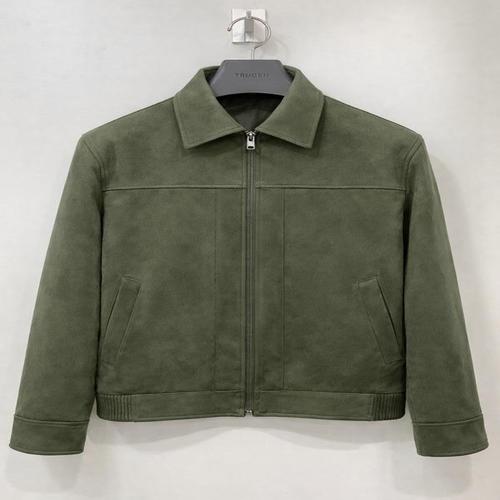 [트루젠]남성 간절기 봄 그린톤 카키컬러 스웨이드 세무 트러커 라이더 자켓 집업 하프 숏점퍼