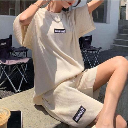 [셀럽하우스]편안한코디 YJXK1897 통기성 신축성 좋은 골지 반팔 반바지세트