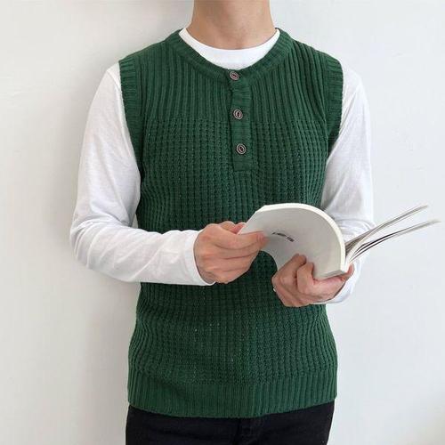 [유니제이] 카리안 버튼 장식 니트 조끼
