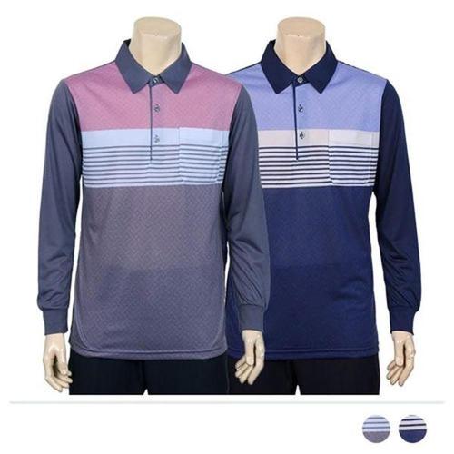 ASURE NEW 남자 라운드 스트라이프 긴팔 티