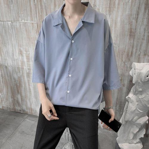 [오너클랜]인기상품 남성반팔셔츠 남성 6부 레이어드패션 오버핏 셔츠 남방 반팔카라 [WFJHPJK_251110]
