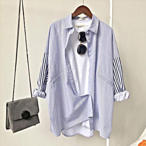 [오너클랜]인기상품 남자남방 여자 패션 남방 오버핏 레이어드셔츠 긴팔 스트라이프 [WFJHMZZ_251110]