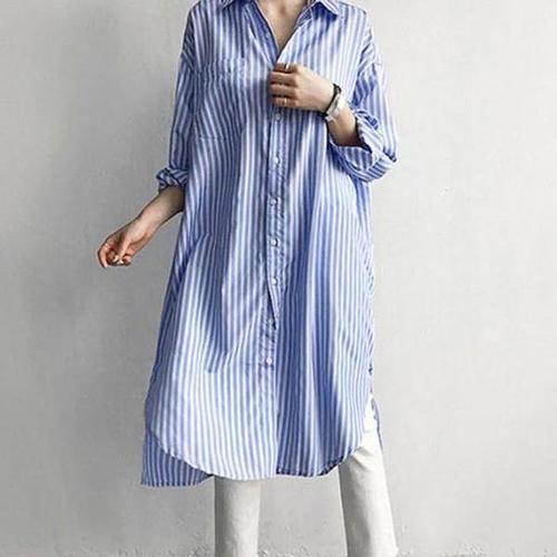 [에이치플러스몰]LEA-B134 절개 스트라이프 롱셔츠