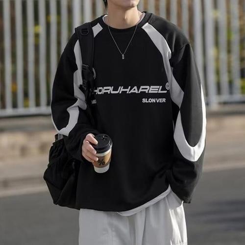 Skyciky 1+1 빅사이즈 맨투맨 남성 가을 패션 브랜드 루즈핏 캐주얼 라운드 긴팔 티 코디 상의 CZ44