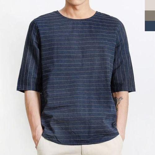 남성 여름 린넨 라운드 반팔 니트티 BOP088