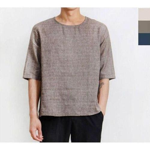 [셀러허브_여성트랜드패션]남자 티셔츠 오버핏 반팔티 린넨셔츠 라운드
