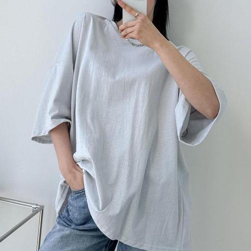 [셀럽하우스]여행 HPJJ0968 반팔 티셔츠 루즈 무지 박스티 패션