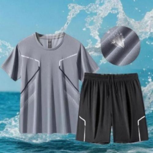 [에이치플러스몰]남성 빅사이즈 쿨링 라인 상하의 반팔 반바지 세트