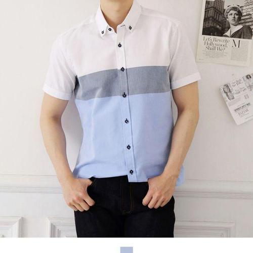 [에이치플러스몰]화이트배색 남자 반팔정장셔츠
