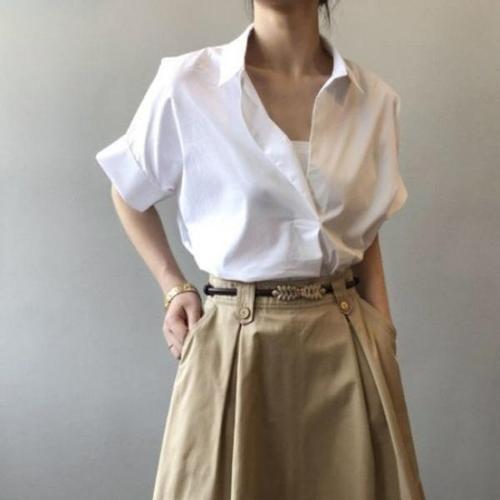 [엄지척]롤업 반팔 셔츠 화이트 셔츠 직장인 여친룩_19650162_667501
