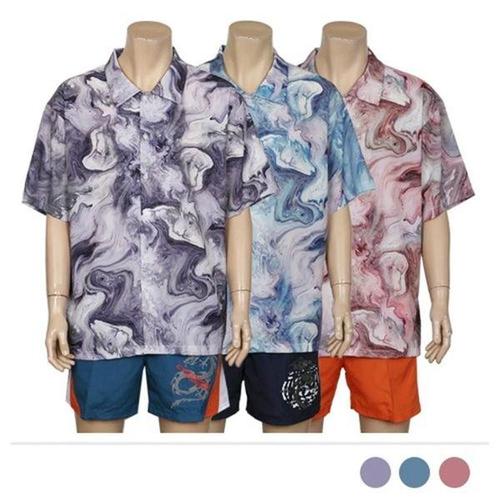 [에이치플러스몰]배색컬러 프리미엄 남성용 데일리사이드포켓 오버사이즈 반소매 와이셔츠 INSUM74