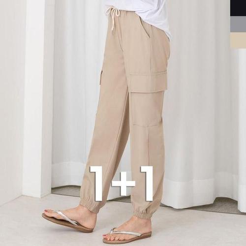 [에이치플러스몰]1+1 면 긴바지 빅사이즈 배기 허리밴딩 신상 배기바지