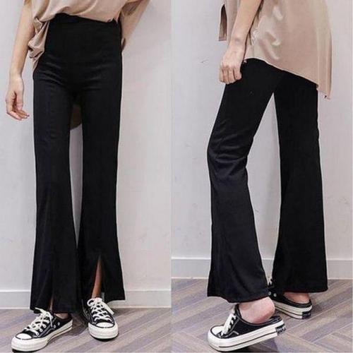 [에이치플러스몰]밴딩슬랙스 밑단 스타일 절개 슬림 면 바지 허리밴딩