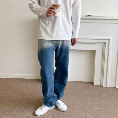 [옷자락]남자 투톤 그라데이션 여름 연청 일자 밴딩 데님팬츠