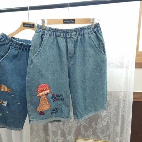 [로즈엘리]66부터 99까지 복고풍 자수 7부 청바지 여름 밴딩 반바지 4컬러