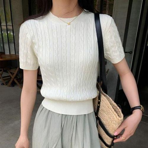 [에이치플러스몰]꽈배기 봄옷 추천 반팔 니트 꾸안꾸 가을옷 분위기적