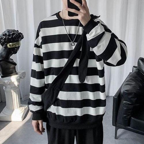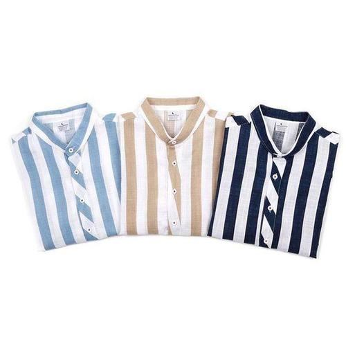 [에이치플러스몰]굵은 줄무늬 남성 헨리넥 셔츠 봄코디 상의 간절기