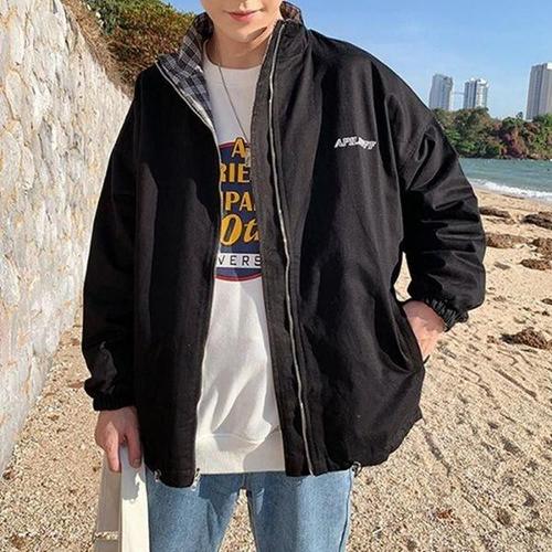 남자 체크 양면 잠바 봄 가을 외출용 리버시블 아우터