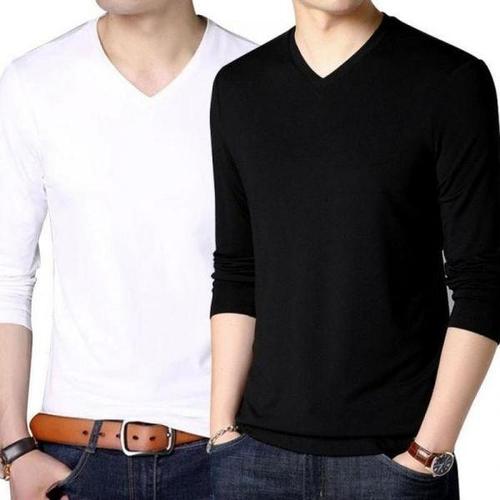 [셀러허브_여성트랜드패션]남자 티셔츠 브이넥 이너 무지 면티 긴팔 레이어드티