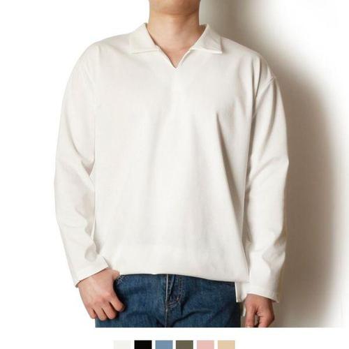 [셀러허브_여성트랜드패션]골지 오픈카라 댄디 v넥 남성 티셔츠 남친룩 긴팔