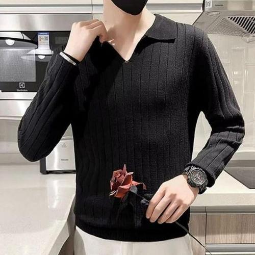 남성용 봄가을 캐주얼 만능 베이스 슬림 핏 마름감 브이넥 긴소매 티셔츠 안감 상의