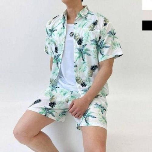 [셀러허브_여성트랜드패션]해변룩 여름 비치웨어 남자 남방 세트 셔츠 반바지 1003 반팔 바캉스